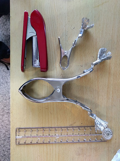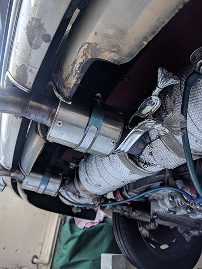 メカニカ356・・・大型洗濯バサミ型ダブル放電テルテル、マフラーとサイレンサー接合部へセットしてみました(写真参照:サイレンサー2本出しなので2個=放電テルテルとしては4個)。